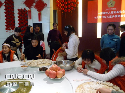 中廣網(wǎng)北京1月25日消息(記者王淑娟實(shí)習(xí)記者張雪)大紅的窗花貼起來,喜慶的燈籠掛起來。除夕的中國(guó)康復(fù)研究中心歡歌笑語,暖意融融。中國(guó)殘疾人福利基金會(huì)、首都各界愛心人士、醫(yī)務(wù)工作者和正在這里康復(fù)治療的汶川地震災(zāi)區(qū)的孩子們一起貼窗花、包餃子,度過了一個(gè)喜慶的團(tuán)圓年。