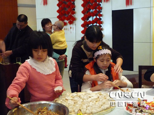 思雨和媽媽、妹妹一起包餃子