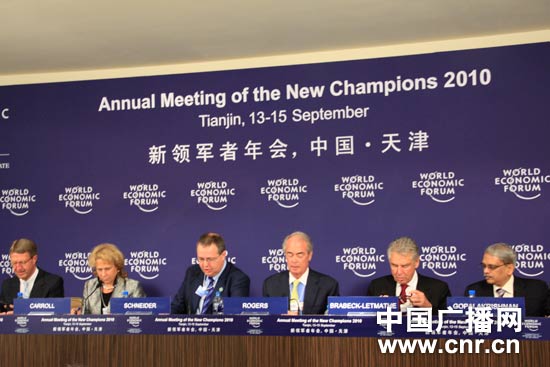 中廣網(wǎng)天津9月13日消息(記者朱虹)13日上午9時,在梅江會展中心新聞發(fā)布廳,世界經(jīng)濟(jì)論壇首席運營官施奈德攜杜克能源首席執(zhí)行官Rogers先生等5位導(dǎo)師與媒體見面,簡要介紹了此次導(dǎo)師會議的內(nèi)容,并分享了各自對于本次新領(lǐng)軍者年會主題“推動可持續(xù)發(fā)展”的理解和為此做出的努力。