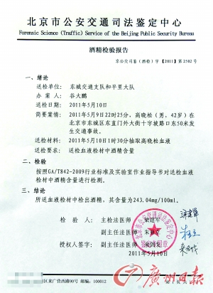 高曉松的酒精檢驗(yàn)報告。