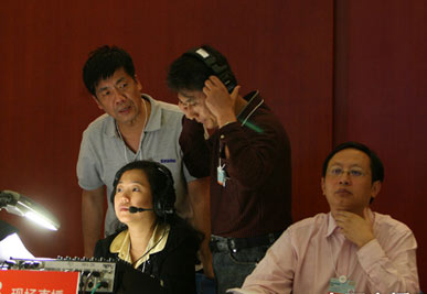 總編室副主任胡國(guó)華監(jiān)聽(tīng)直播情況