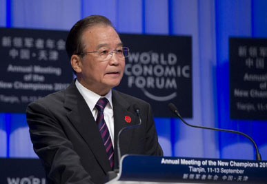溫家寶出席第六屆夏季達(dá)沃斯論壇開(kāi)幕式并致辭
