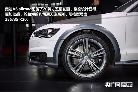外觀方面,奧迪A6 allroad quattro采用了奧迪家族式設(shè)計,經(jīng)典的六邊形進氣格柵采用網(wǎng)格設(shè)計,輔以鍍鉻裝飾。前大燈采用了全新造型的LED日間行車燈,燈組內(nèi)部結(jié)構(gòu)也有所變化,更加犀利。車尾線條圓潤飽滿,尾燈組也有變化,采用了全新的LED燈組。新車配備了20英寸五輻輪圈,鏤空設(shè)計顯得更加動感,輪胎為普利司通天族系列,規(guī)格型號為255/35 R20。
