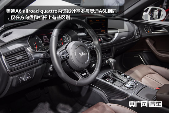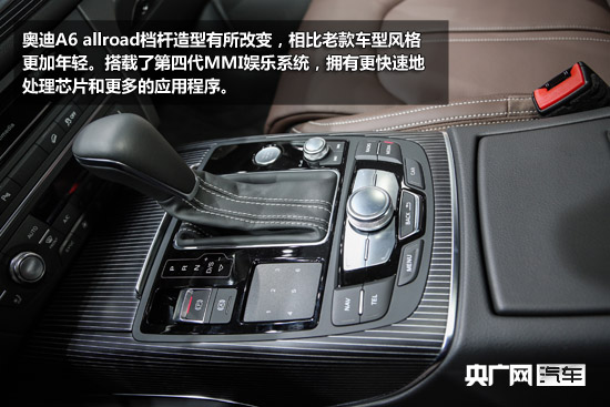 內(nèi)飾方面,奧迪A6 allroad quattro內(nèi)飾設(shè)計基本與奧迪A6L相同,僅在方向盤和檔桿上有些區(qū)別。三幅式方向盤采用真皮包裹,手感細膩,但略顯單薄。中控臺中央的8英寸液晶顯示屏能夠收入中控臺內(nèi)部,顯得很有科技感。新車搭載了第四代MMI娛樂系統(tǒng),擁有更快速地處理芯片和更多的應(yīng)用程序。檔桿造型有所改變,相比老款車型風格更加年輕。
