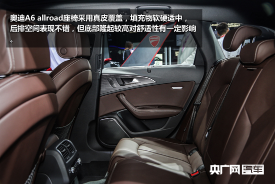 座椅采用真皮覆蓋,填充物軟硬適中,后排空間表現(xiàn)不錯,但底部隆起較高對舒適性有一定影響。 奧迪A6 allroad quattro標準狀態(tài)下行李廂容積為565升,第二排座椅放倒后可達到1680升。