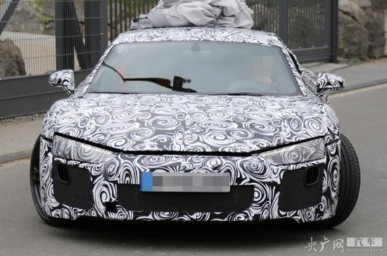 由于偽裝較少,車身輪廓已經(jīng)比較清晰,車身尺寸與現(xiàn)款R8相近。前大燈集合了LED日行燈。我們可以看到車頭兩側(cè)的大口徑散熱口,但進氣格柵的面積有所縮減,并使用了全新設(shè)計的前大燈。