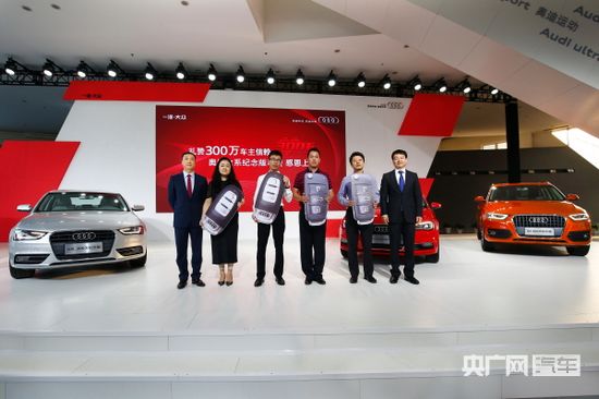 2015年5月21日,一汽-大眾奧迪正式宣布:奧迪品牌在華累計銷量突破300萬輛。為答謝用戶而打造的四款“300萬紀念版”車型——奧迪A6L 300萬紀念版、奧迪A4L 300萬紀念版、奧迪A3 300萬紀念版和奧迪Q3 300萬紀念版,即日起正式上市。