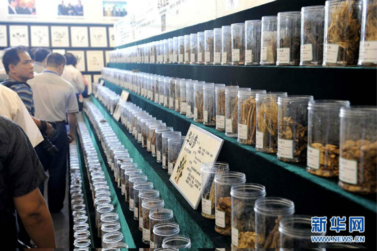 2011年5月23日,在廣西玉林市玉林銀豐國際中藥港舉辦的“藥博會”上,參觀者在瀏覽各種中藥材。(新華社記者周華 攝)