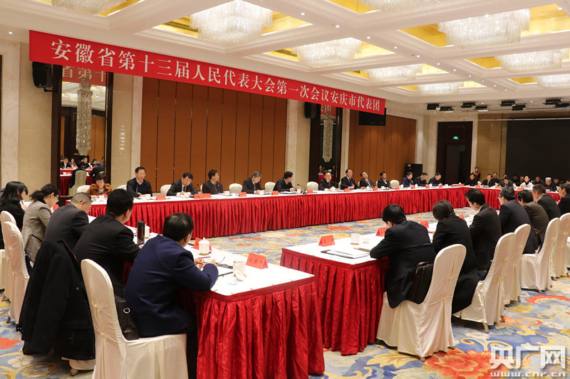 央廣網(wǎng)合肥1月23日消息(記者徐鵬)昨日,安徽省十三屆人民代表大會(huì)第一次會(huì)議在合肥開(kāi)幕。1月23日,各市代表團(tuán)舉行分組會(huì)議,審議政府工作報(bào)告等相關(guān)報(bào)告。圖為安慶代表團(tuán)舉行分組會(huì)議。 -