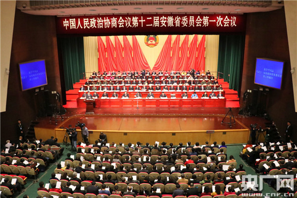 央廣網(wǎng)合肥1月21日消息(記者徐鵬)2018年1月21日上午9時(shí)整,中國(guó)人民政治協(xié)商會(huì)議第十二屆安徽省委員會(huì)第一次會(huì)議開幕。大會(huì)聽取十一屆省政協(xié)常務(wù)委員會(huì)工作報(bào)告。