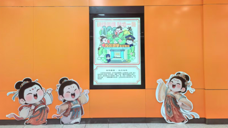 日前,天津地鐵“禮儀研學”主題車站在地鐵5號線職業(yè)大學站落成。