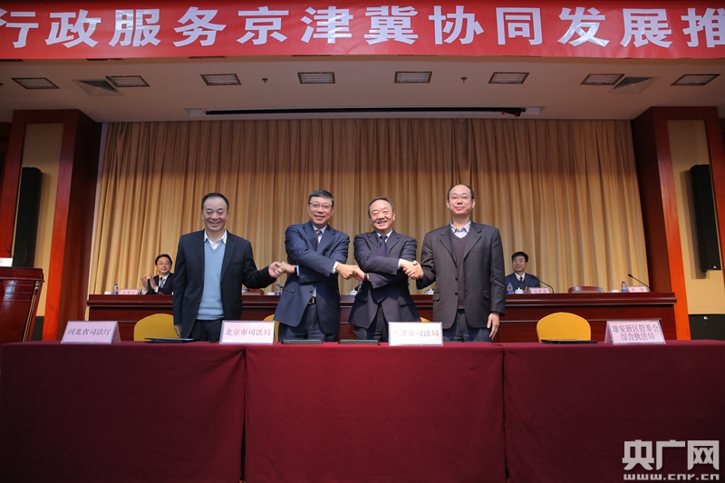 據(jù)悉,自2015年9月簽署《司法行政工作服務京津冀協(xié)同發(fā)展框架協(xié)議》,以及涉及法治宣傳、律師代理、公證、監(jiān)獄工作等4方面的“1+4”合作協(xié)議,正式拉開三地服務京津冀協(xié)同發(fā)展的序幕,開啟了三地共建共享、攜手并進的新征程。2017年,三地又共同簽署《京津冀戒毒工作協(xié)同發(fā)展合作協(xié)議》,形成司法行政服務京津冀協(xié)同發(fā)展“1+9”的整體工作框架,實現(xiàn)對司法行政主要業(yè)務工作的全覆蓋,為最大限度地統(tǒng)籌三地司法行政資源,凝聚三地司法行政力量,全力服務京津冀協(xié)同發(fā)展奠定堅實基礎。