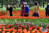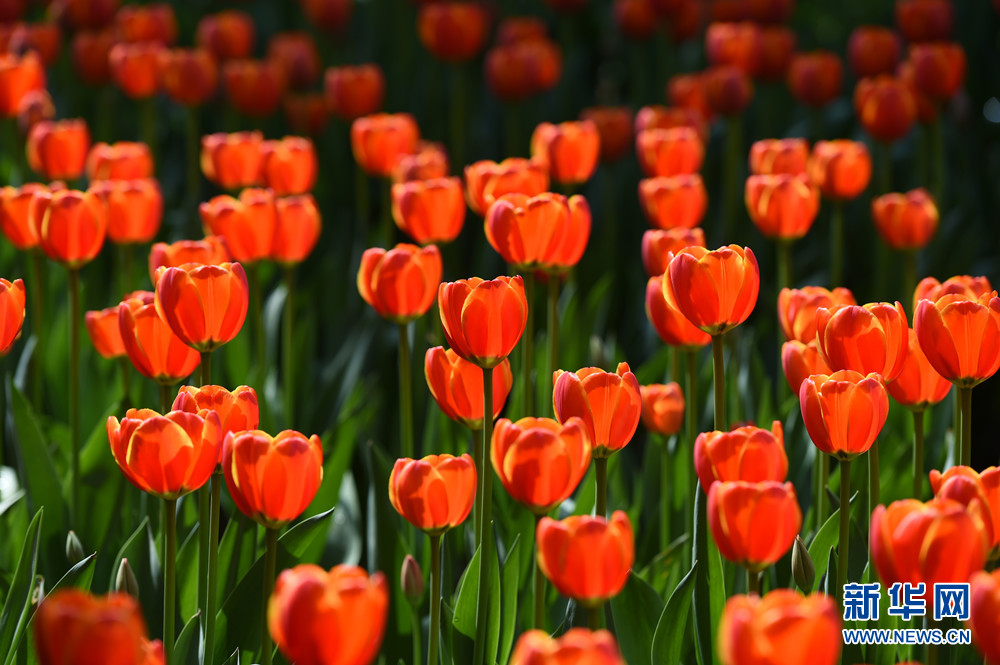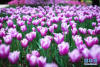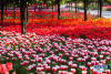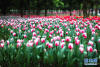 游客在郁金香花海中漫步。新華網(wǎng)發(fā)(喻慶 攝)