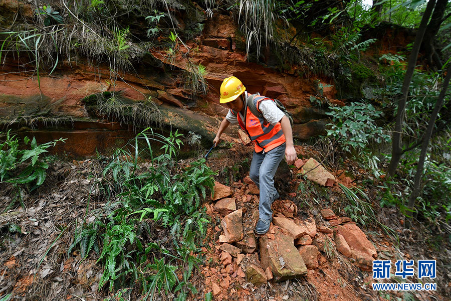 在汛期,每天地質(zhì)隊(duì)員們都要奔波在轄區(qū)的各個(gè)山體處,用雙腳走出對(duì)地質(zhì)情況的了然于心,也走出了一方百姓的平安。新華網(wǎng)發(fā)(郭旭 攝)