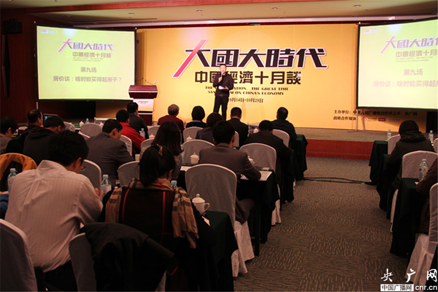 10月24日,由中央人民廣播電臺(tái)經(jīng)濟(jì)之聲、央廣網(wǎng)主辦的《大國大時(shí)代----中國經(jīng)濟(jì)十月談》系列時(shí)事報(bào)告會(huì)之九“房價(jià)談”,在廣電國際酒店舉行。今天的主題是《房價(jià)談:啥時(shí)能買得起房子?》。圖為報(bào)告會(huì)現(xiàn)場(chǎng)。(央廣網(wǎng) 于琦/攝)