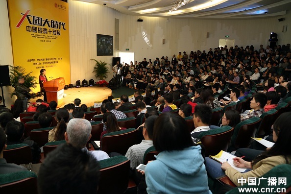 央廣網(wǎng)財經(jīng)北京10月15日消息(經(jīng)濟之聲記者柯成韻 劉中琪)由中央人民廣播電臺經(jīng)濟之聲、央廣網(wǎng)主辦的《大國大時代——中國經(jīng)濟十月談》系列時事報告會,10月14日在北京大學啟動。第一場報告會“改革談—大國經(jīng)濟該從哪里升級”由著名經(jīng)濟學家厲以寧教授、中國銀河證券首席總裁顧問左小蕾主講。