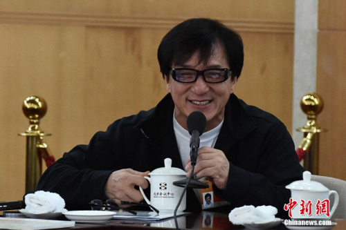 全國(guó)政協(xié)十二屆三次會(huì)議文藝界討論組對(duì)中外記者開放。成龍參加討論并現(xiàn)場(chǎng)發(fā)言。中新社發(fā) 翟羽佳 攝
