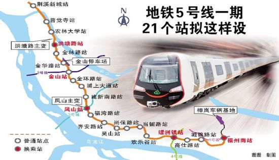 福州地鐵5號線一期擬設(shè)21個站點 全長約27.2公里