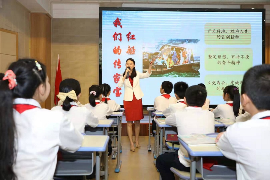 “通過喜聞樂見的方式開展黨史學習活動,就是為了讓學生了解黨的光輝歷程,牢記黨的崢嶸歲月,繼承黨的光榮傳統(tǒng),弘揚黨的革命精神!狈鹕绞需F軍小學校長張麗琴說。