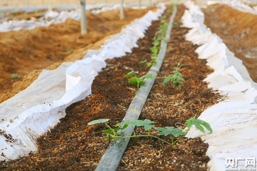 勝利大棚內(nèi)采用無土栽培技術種植的苦瓜(央廣網(wǎng)記者 夏燕 攝)