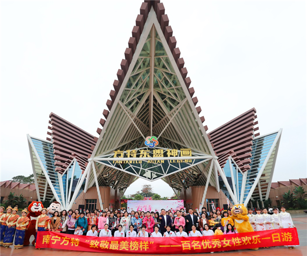 優(yōu)秀女性代表團在南寧方特合影(央廣網(wǎng)發(fā) 南寧方特東盟神畫主題樂園供圖)