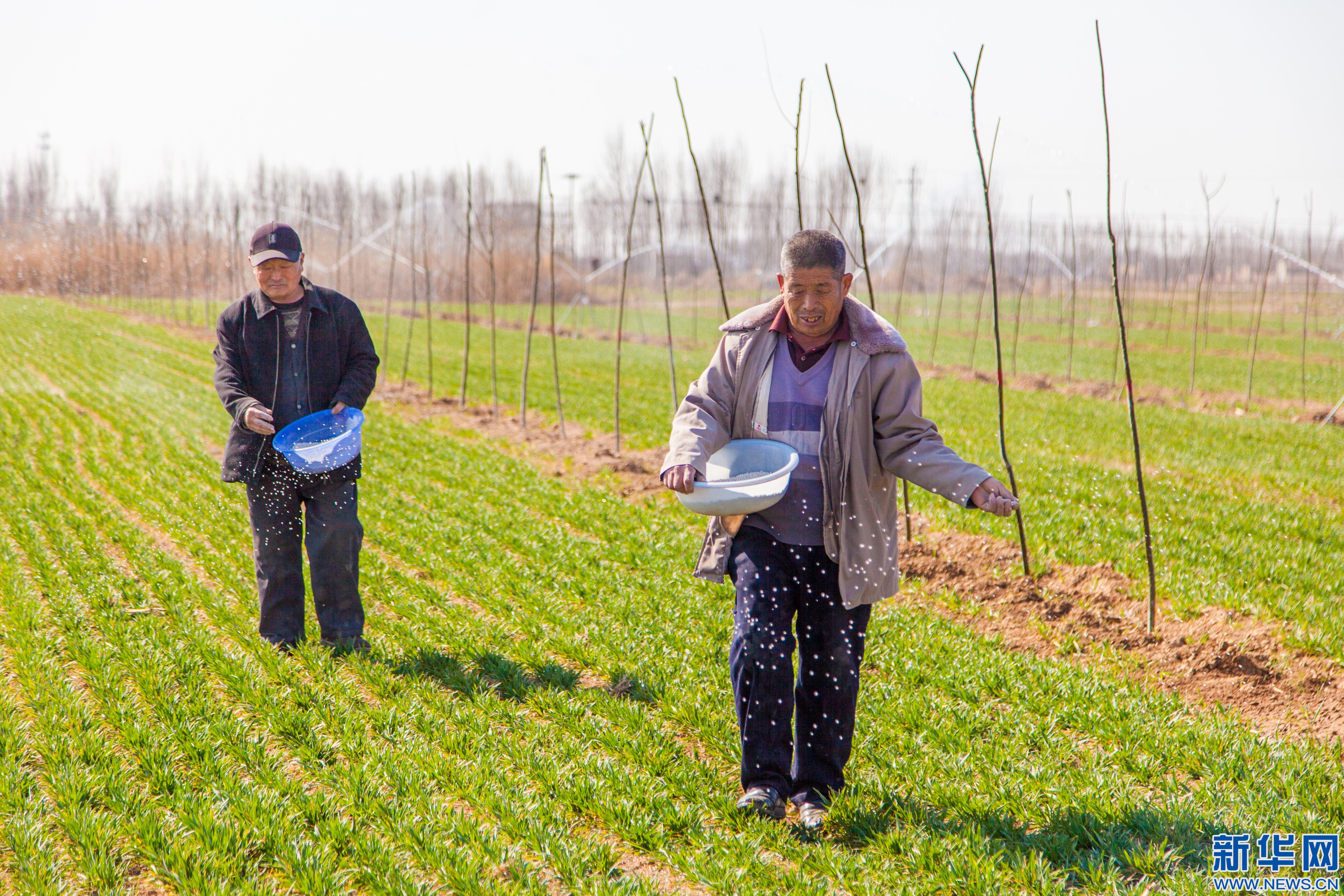 • 3月12日,河北省武邑縣四里屯村農(nóng)民在麥田為小麥施肥。新華社記者朱旭東 攝