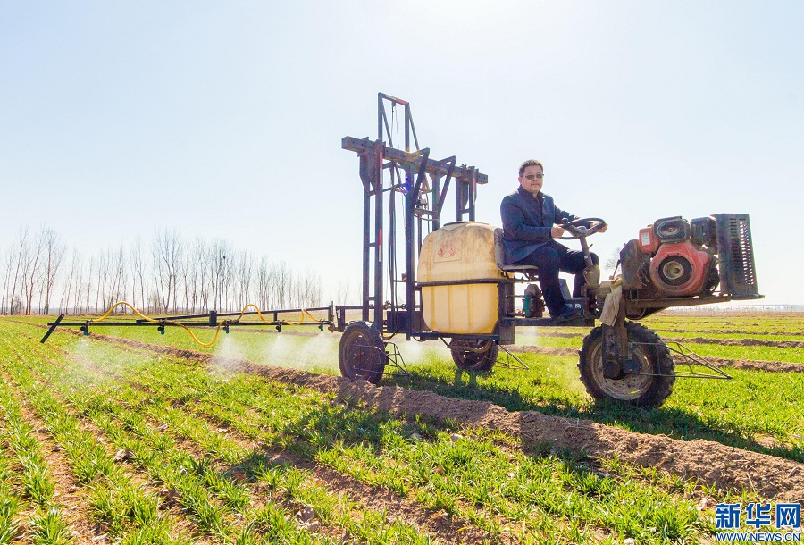• 3月12日,河北省武邑縣四里屯村農(nóng)民駕駛農(nóng)用機械在麥田噴灑農(nóng)藥。新華社記者朱旭東 攝
