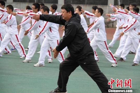 盤破門武術(shù)教練正在傳教武術(shù),讓盤破門發(fā)揚(yáng)光大。 劉鐵流 攝