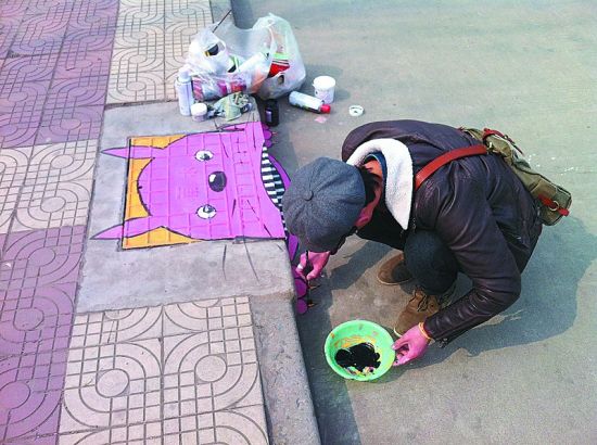 央廣網(wǎng)河南分網(wǎng)消息 據(jù)燕趙都市報(bào)報(bào)道:河北經(jīng)貿(mào)大學(xué)的校園里最近多了一道風(fēng)景:井蓋、下水道、臺(tái)階上,出現(xiàn)了小豬、大黃鴨、大臉貓、加菲貓小動(dòng)物,這些畫都出自河北經(jīng)貿(mào)大學(xué)大四學(xué)生熊航之手。熊航說,如果可以的話,他想把這種井蓋藝術(shù)帶到城市里。 (記者 劉濤 李保健/攝)