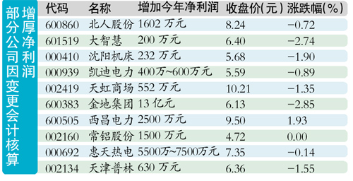 紅旗連鎖周四也發(fā)布會計估計變更公告指出,變更會計從2014年1月1日起執(zhí)行,預計將增加2014年度凈利潤約2000萬元。而該公司今年前三季度的凈利潤增幅只有1%。另外,常鋁股份也通過變更會計為該公司2013年帶來1500萬元利潤,而其2012年及今年前三季分別虧損6925.49萬元與5271.35萬元,存在被ST風險。