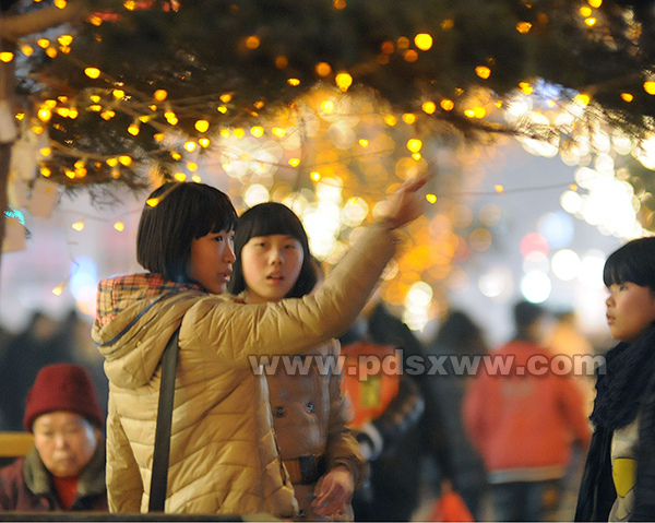 臨近寒假,孩子們來到街頭欣賞夜景。