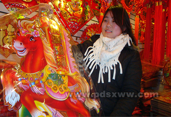 很多商家也圍繞“馬”字大做文章:2014年祝愿大家馬到成功、馬壯人強(qiáng)、馬上發(fā)財(cái)……(記者 張鵬 攝)