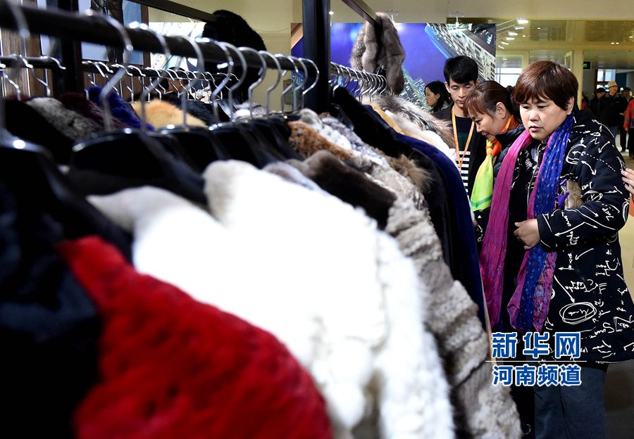 11月20日,鄭州市民在香港時尚購物展上選購服裝。