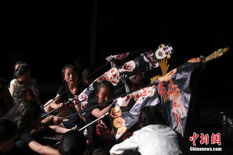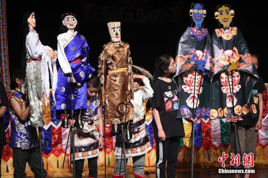 《勇敢男孩久太》是一部高原木偶劇,傳承自具有幾千年歷史的神圣儺具表演,劇中的大木偶,都根據(jù)高原特有儺戲和人偶模式、傳統(tǒng)手工制作。中新社記者 盛佳鵬 攝 -