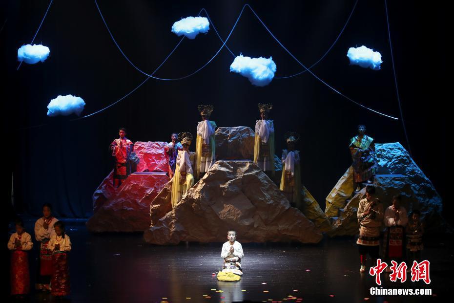 藏式音樂(lè)劇《騎風(fēng)馬的旦措》排練時(shí)間雖短,但藏式戲劇風(fēng)格在表演中取得了不錯(cuò)的演出效果。中新社記者 盛佳鵬 攝 -
