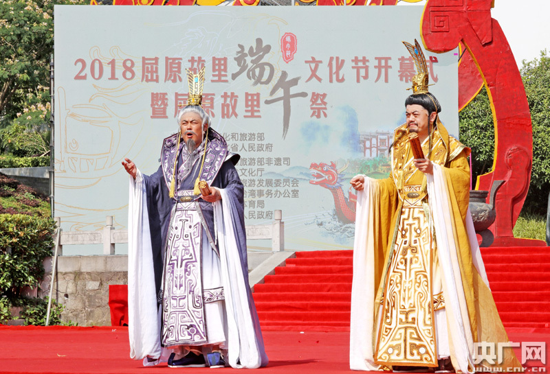 央廣網(wǎng)宜昌6月15日消息(記者熊峰 通訊員雷鵬程)6月15日上午,2018屈原故里端午文化節(jié)開(kāi)幕式暨屈原故里端午祭在秭歸縣舉行,來(lái)自海峽兩岸的嘉賓、屈氏后裔和當(dāng)?shù)孛癖娨黄,聚集長(zhǎng)江之濱秭歸屈原祠廣場(chǎng)緬懷屈原。