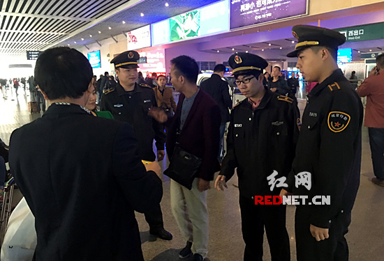在火車南站,雨花區(qū)城市管理綜合執(zhí)法大隊(duì)火車南站中隊(duì)共13人!叭咳∠暗呐虐嘈菁,全員上崗!”中隊(duì)長易杲昱帶隊(duì)在轄區(qū)巡邏,“火車南站是黨代表們抵達(dá)長沙的第一站,我們不能松懈。”對于部分旅客存在的不文明行為,比如亂吐亂扔,在督促站區(qū)物業(yè)保潔立即清理的同時(shí),也對不文明行為人進(jìn)行禮貌規(guī)勸和教育。