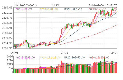 9月30日上證綜指以2361.32點小幅高開,全天圍繞前一交易日收盤點位窄幅整理,盤中創(chuàng)下2365.49點的本輪反彈新高,亦是18個月以來的新高。