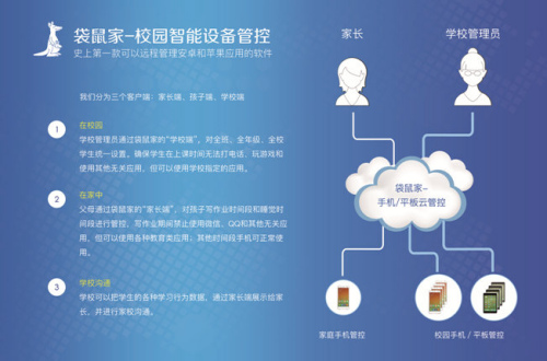 “全國(guó)中小學(xué)生智慧監(jiān)測(cè)與評(píng)價(jià)服務(wù)工程“是一個(gè)面向全國(guó)四十萬余所中小學(xué)的項(xiàng)目,為保證學(xué)生能使用手機(jī)正常學(xué)習(xí)而不受到“游戲干擾”,該項(xiàng)目在學(xué)生手機(jī)中集成了一款名為“袋鼠家”的校園智能設(shè)備管控系統(tǒng),保證學(xué)生的手機(jī)在上課和寫作業(yè)時(shí)受到“智能管控”,只允許使用指定的應(yīng)用,卻禁用所有的游戲且限制社交工具的使用時(shí)長(zhǎng),這才保證了課堂紀(jì)律與教學(xué)質(zhì)量。