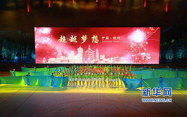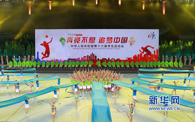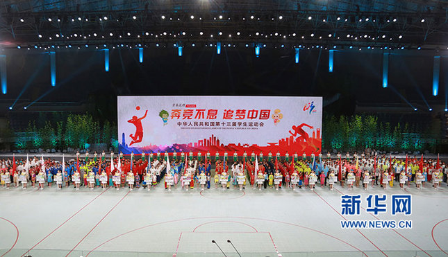 新華網(wǎng)杭州9月4日電 3日晚,第十三屆全國(guó)學(xué)生運(yùn)動(dòng)會(huì)在杭州黃龍?bào)w育館拉開(kāi)帷幕。