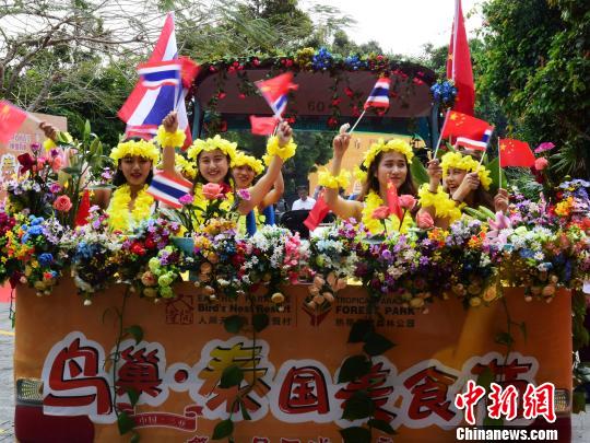 三亞一景區(qū)民俗活動(dòng)中,苗家姑娘以最高禮遇“高山流水”接待游客 王曉斌 攝
