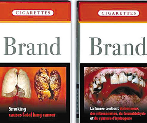 2001年,加拿大開(kāi)始采用圖形警示煙盒,前后九年的數(shù)據(jù)對(duì)比,該國(guó)吸煙率下降了12%—20%。