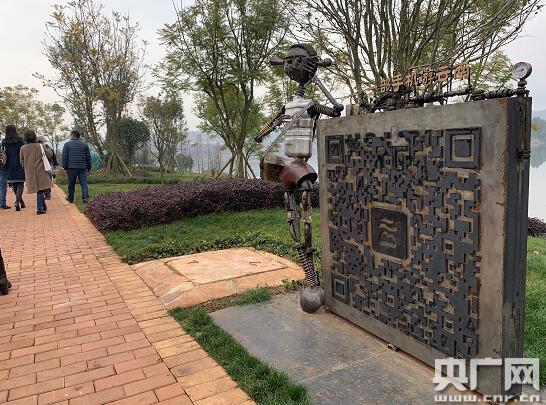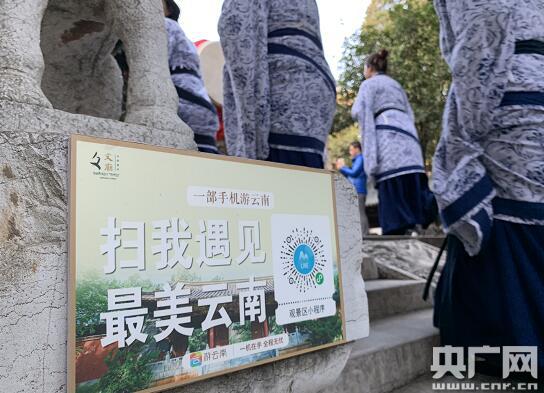 在位于云南彌勒市的東風(fēng)韻文化小鎮(zhèn)大門(mén)外,放置著一塊大型“一部手機(jī)游云南”App二維碼,游客可掃碼下載。(央廣記者 孫冰潔 攝)