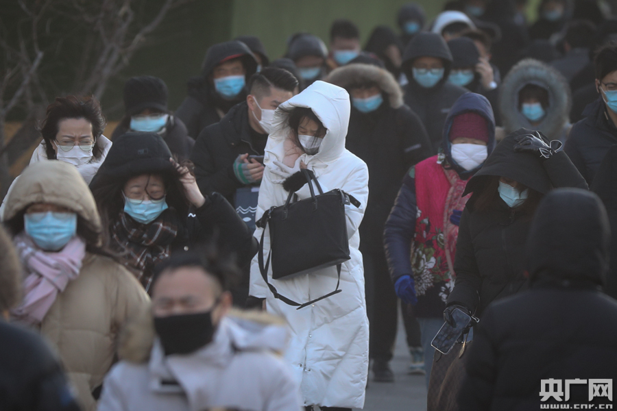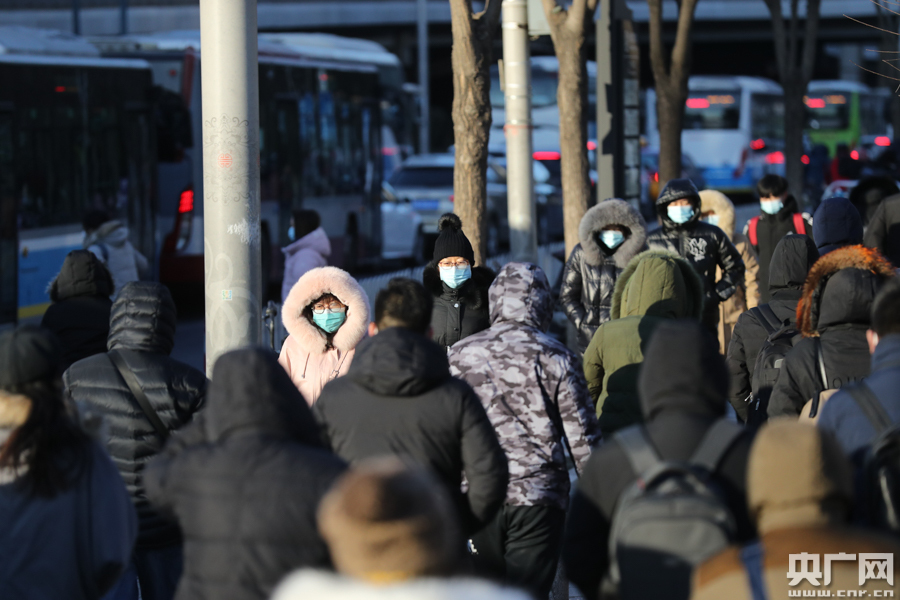 1月6日,北京國貿(mào),早高峰時(shí)段市民冒嚴(yán)寒出行(央廣網(wǎng)記者 韓靖 攝)