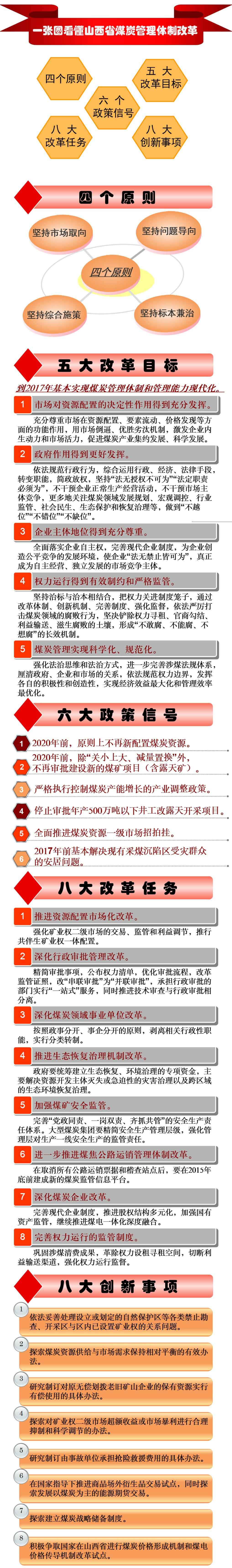 《意見》共分十二部分36條,在明確指導(dǎo)思想和改革目標(biāo)的基礎(chǔ)上,分別從資源配置、項(xiàng)目審批、建設(shè)生產(chǎn)、生態(tài)治理、安全監(jiān)管、銷售體制、交易方式、企業(yè)改革、權(quán)力約束、法治建設(shè)、改革推進(jìn)等重點(diǎn)領(lǐng)域和關(guān)鍵環(huán)節(jié)提出了明確的要求。