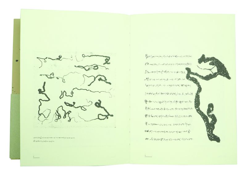 《蟲子書》由朱贏椿、皇甫珊珊設(shè)計(jì),廣西師范大學(xué)出版社出版。本書作者兼設(shè)計(jì)師每日與工作室的各色蟲子朝夕相處,收集它們?cè)谌~子上啃咬或紙張上爬行后留下的痕跡。經(jīng)過(guò)處理形成一幅幅形態(tài)各異的“作品”。2016“中國(guó)最美的書”評(píng)委會(huì)給出如下評(píng)語(yǔ):全書內(nèi)頁(yè)沒(méi)有文字,由蟲子留下的爬行痕跡構(gòu)成。經(jīng)過(guò)非常細(xì)致的觀察與處理,蟲子們一幅幅形態(tài)各異的“作品”具有了書法與文本的氣韻,妙趣天成,一本“假書”橫空出世。黑、白與淺駝色的沉穩(wěn)搭配以及整潔利落的裝訂使整本書十分素雅端莊。