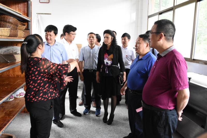 國(guó)務(wù)院扶貧辦規(guī)劃財(cái)務(wù)司巡視員任鐵民一行在遂川縣高坪鎮(zhèn)車(chē)下村調(diào)研籠藏米馃生產(chǎn)車(chē)間