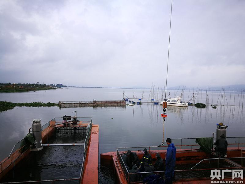 在位于云南省玉溪市東南部的通海杞麓湖,滿滿一船花鰱和白鰱正被打撈出水,當(dāng)天就將運(yùn)往廣州。云南亞美湖泊水質(zhì)治理有限公司市場部經(jīng)理黃哲參望著不斷躍出水面的大魚,十分欣喜。