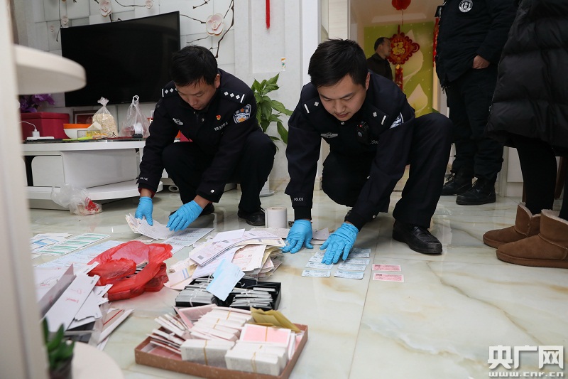 民警從嫌疑人制假窩點(diǎn)中查獲還未寄出的成品假火車(chē)票。央廣網(wǎng)發(fā) 田昊 攝