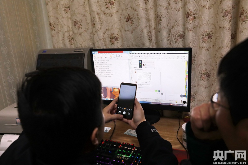 民警對(duì)照檢查作案手機(jī)及電腦。央廣網(wǎng)發(fā) 田昊 攝